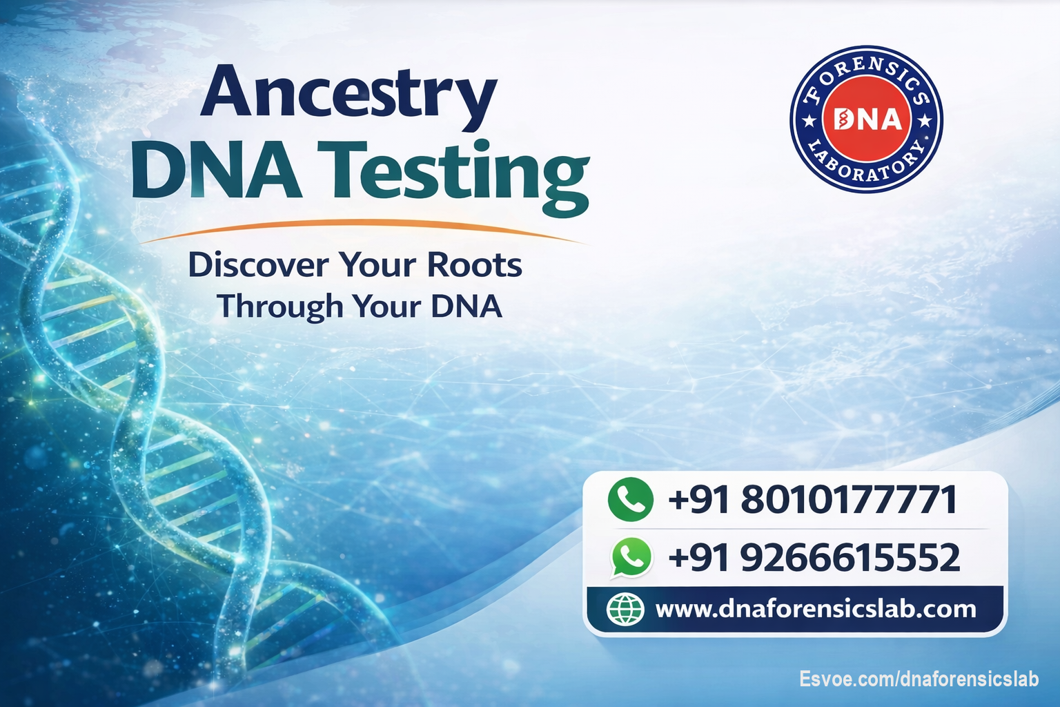 Discover your true heritage with a reliable DNA Ancestry Test Kit designed to uncover your family origins with scientific accuracy. A DNA Ancestry Test is an advanced method that analyzes your genetic markers to reveal your ethnic background and ancestral roots beyond traditional family records. Through modern Ancestry DNA testing, you can gain valuable insights into where your ancestors came from and how your lineage evolved over generations. DNA Testing for Ancestry in India has become simple, precise, and easily accessible. DNA Forensics Laboratory Pvt. Ltd. provides trusted, scientifically validated ancestry testing services at competitive prices. With more than 400 sample collection centers worldwide, the process is smooth, confidential, and convenient. Your comprehensive ancestry report is typically delivered within 4–5 weeks. You can also conveniently order a DNA Ancestry Test Kit from the comfort of your home. For more information about DNA Ancestry Testing, Ancestry DNA Testing, or DNA Testing for Ancestry, call us at +91 8010177771 or WhatsApp us at +91 9266615552.