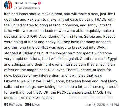 ▪️Ми завершили 8 воєн за 8 місяців, включаючи цю. Вчора я говорив 7, але тепер можу сказати 8 — заручники повернулися.